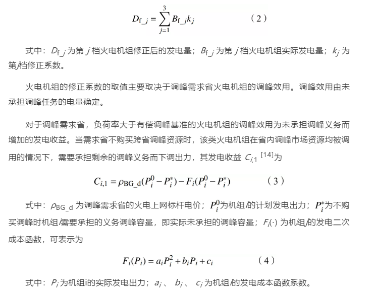 火電機(jī)組可以通過“調(diào)減出力”方式提供調(diào)峰服務(wù)。一般情況下,火電機(jī)組最小技術(shù)出力為50%負(fù)荷率,低于最小技術(shù)出力范圍時(shí),火電機(jī)組由于燃燒不穩(wěn)等原因需要增加燃燒成本。因此,應(yīng)以50%負(fù)荷率為分界點(diǎn),對(duì)火電機(jī)組提供的調(diào)峰服務(wù)加以區(qū)分。另外,各省火電機(jī)組參與跨省調(diào)峰將對(duì)省內(nèi)火電機(jī)組發(fā)電量產(chǎn)生影響,需要兼顧火電機(jī)組年度基數(shù)電量合約的完成情況。