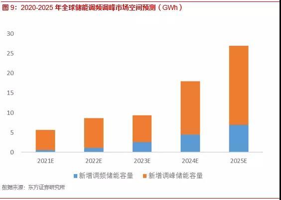 根據(jù)我們的測(cè)算,全球2025年電網(wǎng)側(cè)調(diào)頻需求帶動(dòng)的儲(chǔ)能需求為6.9GWh,復(fù)合增長(zhǎng)率達(dá)65.7%,電網(wǎng)側(cè)調(diào)峰需求產(chǎn)生的儲(chǔ)能需求為20GWh,復(fù)合增長(zhǎng)率達(dá)31.3%。