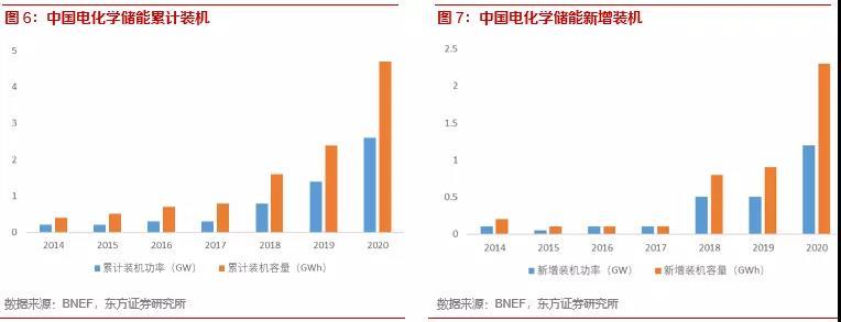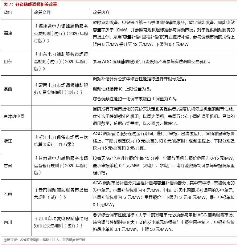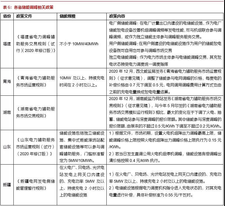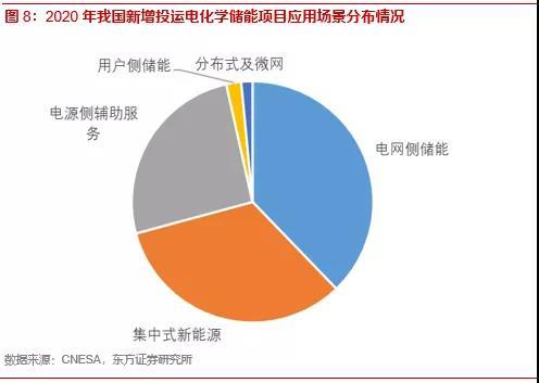 我國(guó)電化學(xué)儲(chǔ)能快速發(fā)展,在電力輔助服務(wù)市場(chǎng)應(yīng)用潛力巨大。電化學(xué)儲(chǔ)能以其靈活性高、響應(yīng)速度快、環(huán)境資源約束小、技術(shù)進(jìn)步空間大、與新能源發(fā)協(xié)同效應(yīng)高的優(yōu)勢(shì),在電力輔助服務(wù)市場(chǎng)有巨大的應(yīng)用空間。根據(jù)BNEF統(tǒng)計(jì),2020年中國(guó)電化學(xué)儲(chǔ)能新增裝機(jī)2.3GWh,同比增長(zhǎng)156%。根據(jù)CENSA統(tǒng)計(jì),2020年新增投運(yùn)的電化學(xué)儲(chǔ)能項(xiàng)目中,電網(wǎng)側(cè)儲(chǔ)能296.4MW(37.8%),電源側(cè)輔助服務(wù)201.5MW(25.7%)。未來(lái)伴隨著我國(guó)能源結(jié)構(gòu)的轉(zhuǎn)型、電力市場(chǎng)的成熟和儲(chǔ)能成本的降低,電化學(xué)儲(chǔ)能將爆發(fā)出巨大的潛力。我們預(yù)計(jì),全球2025年電網(wǎng)側(cè)調(diào)頻需求帶動(dòng)的儲(chǔ)能需求為6.9GWh,調(diào)峰儲(chǔ)能需求為20GWh。