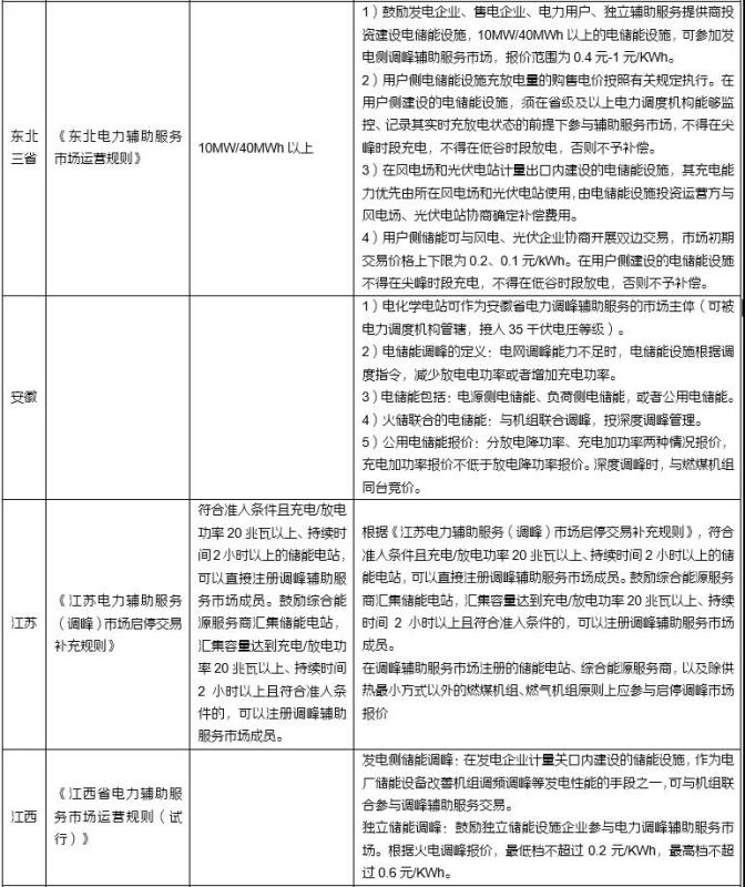 新型儲(chǔ)能市場(chǎng)地位進(jìn)一步明確。2021年,根據(jù)新版“兩個(gè)細(xì)則”的規(guī)定,電力輔助服務(wù)提供主體包括火電、水電、核電、風(fēng)電、光伏發(fā)電、抽水蓄能、新型儲(chǔ)能等以及能夠響應(yīng)調(diào)度指令的用戶可調(diào)節(jié)負(fù)荷(包括通過(guò)聚合商、虛擬電廠等形式聚合的可調(diào)節(jié)負(fù)荷)等并網(wǎng)主體。新型儲(chǔ)能和能夠響應(yīng)調(diào)度指令的用戶可調(diào)節(jié)負(fù)荷被作為市場(chǎng)主體列入政策,政策積極推進(jìn)新型儲(chǔ)能、用戶可調(diào)節(jié)負(fù)荷、聚合商、虛擬電廠等資源參與電力輔助服務(wù)。