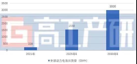 全球動(dòng)力電池出貨量預(yù)測(cè)(GWh)