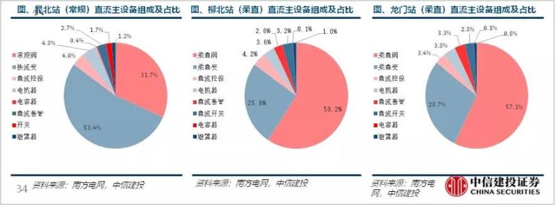 ▲昆柳龍工程常規(guī)換流站和柔直換流站設(shè)備組成占比,數(shù)據(jù)來源:中信建投