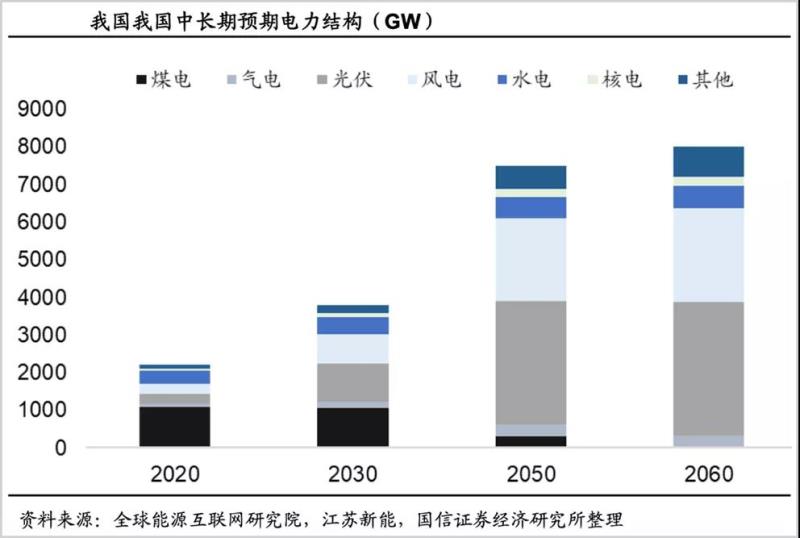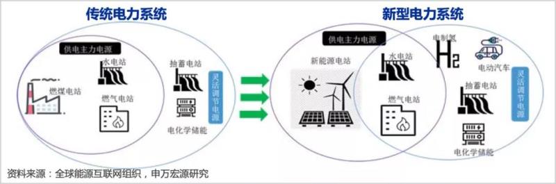 最終達(dá)到“源、網(wǎng)、荷、儲(chǔ)”的智能互動(dòng),以及多種能源系統(tǒng)的融合協(xié)調(diào)。相比傳統(tǒng)電力系統(tǒng),新型電力系統(tǒng)將更加柔性化和智能化,也將催生出巨大的結(jié)構(gòu)性投資機(jī)遇。