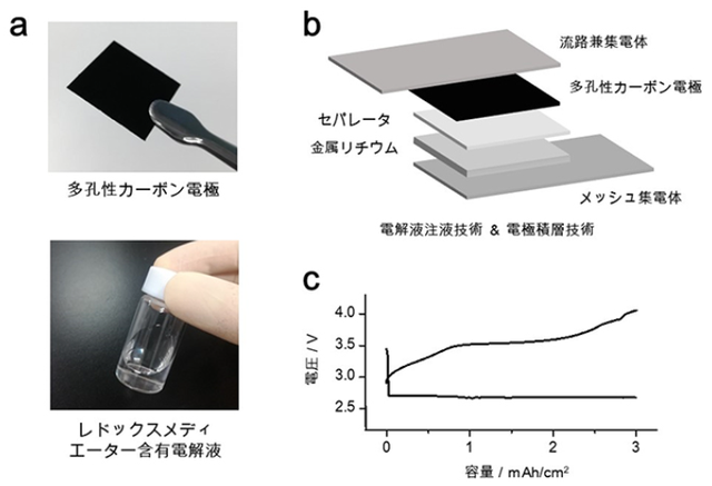 與其他處于研究層面的LABs一樣,該電池依靠鋰為負(fù)極,氧用于多孔碳正極。該設(shè)備中含有10個(gè)堆疊電芯,尺寸為4 cm×5 cm,單層電芯中帶有2 cm×2 cm的電極。研究人員表示:“在堆疊式電芯結(jié)構(gòu)中,氧氣需要在氣體擴(kuò)散層中沿水平方向傳輸。此后,氧氣需要進(jìn)一步向垂直方向輸送,才能穿過整個(gè)正極部分?!?