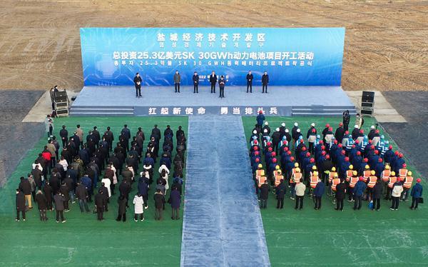 SK動(dòng)力電池鹽城基地是韓國SK集團(tuán)全球布局中最大的、具有示范引領(lǐng)帶動(dòng)作用的行業(yè)龍頭。此次開工的SK30GWh動(dòng)力電池項(xiàng)目,是近年來鹽城市最大的利用外資項(xiàng)目,計(jì)劃今年12月份主體竣工,明年1月份設(shè)備進(jìn)場,投產(chǎn)后年可新增銷售200億元,為鹽城新能源汽車產(chǎn)業(yè)發(fā)展壯大提供好配套和強(qiáng)支撐。