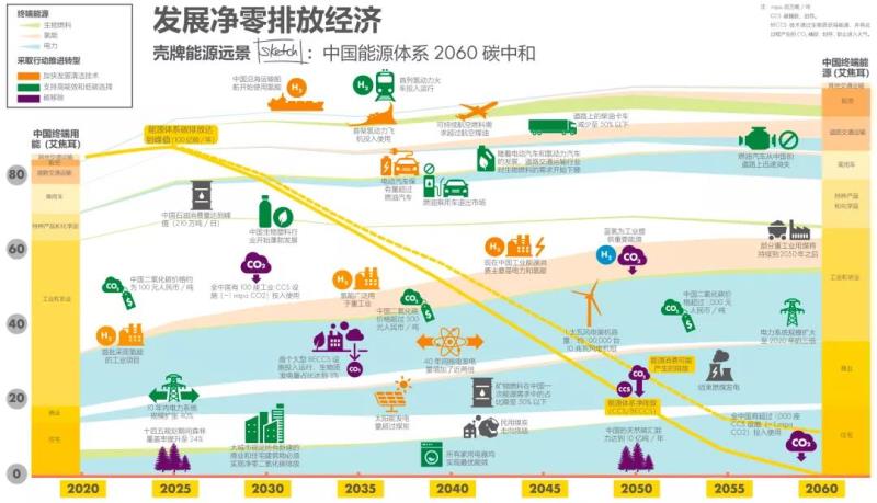 對比來看,殼牌提出的技術(shù)路徑更為具體。殼牌報告稱,要實現(xiàn)2060碳中和的目標(biāo),中國需要實現(xiàn)八項具體目標(biāo):