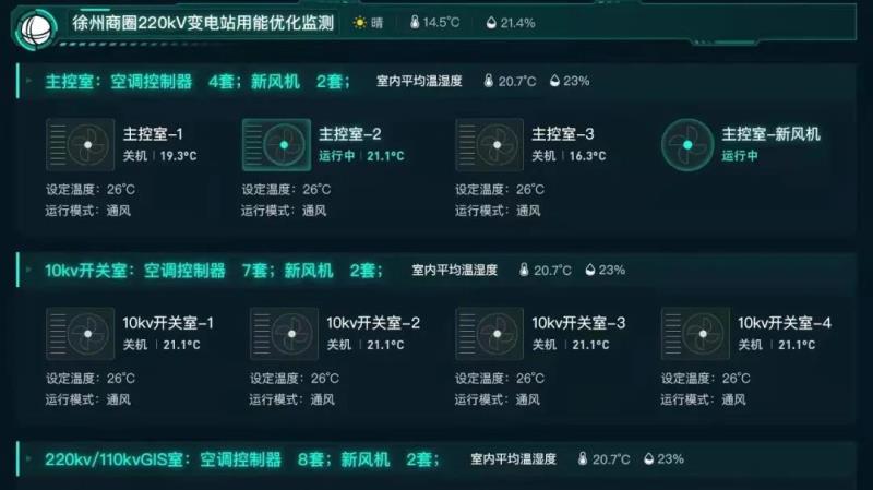 “我們根據(jù)變電站內(nèi)外的溫度和熱負荷變化情況,通過空調(diào)智慧用電管理系統(tǒng)和智能免維護新風(fēng)系統(tǒng),實時調(diào)整變電站空調(diào)運行策略模式和控制參數(shù),在滿足變電站室內(nèi)溫濕度指標要求的前提下,達到降低變電站能耗水平的目標。”國網(wǎng)江蘇綜合能源服務(wù)有限公司儲能及產(chǎn)品事業(yè)部總經(jīng)理周顯威介紹到。