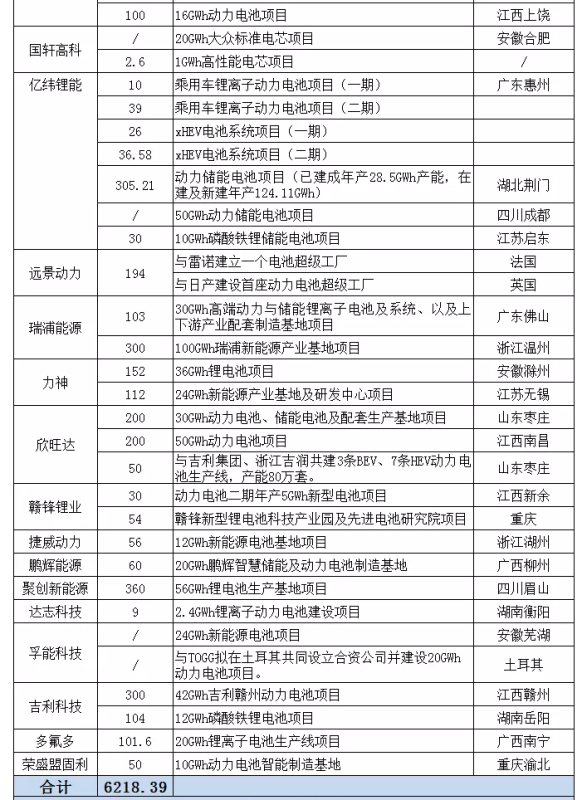 高工鋰電據(jù)不完全統(tǒng)計,2021年動力電池投擴(kuò)項目63個(含募投項目),投資總額超6218億元,規(guī)劃新增產(chǎn)能超過2.5TWh。