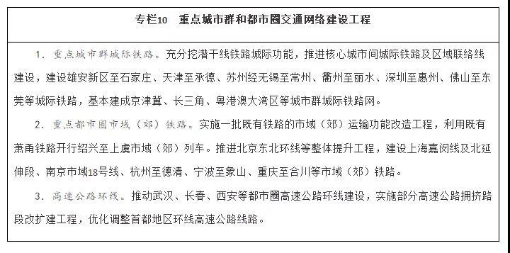 強(qiáng)化重點(diǎn)城市群城際交通建設(shè)。圍繞京津冀、長三角、粵港澳大灣區(qū)、成渝、長江中游等城市群,以軌道交通、高速公路為骨干,提升城際運(yùn)輸通道功能,加強(qiáng)核心城市快速直連,構(gòu)建多節(jié)點(diǎn)、網(wǎng)絡(luò)化的城際交通網(wǎng),實(shí)現(xiàn)城市群內(nèi)主要城市間2小時(shí)通達(dá)。整體推進(jìn)京津冀、長三角、粵港澳大灣區(qū)城際鐵路和市域(郊)鐵路建設(shè),有序推動(dòng)成渝地區(qū)雙城經(jīng)濟(jì)圈城際鐵路和市域(郊)鐵路建設(shè),加強(qiáng)與高速鐵路、普速鐵路一體銜接,擴(kuò)大對(duì)5萬人口以上城鎮(zhèn)的有效覆蓋。
