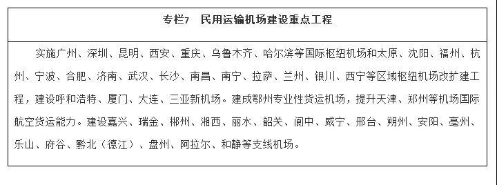 擴(kuò)大航空網(wǎng)絡(luò)覆蓋。推動(dòng)區(qū)域機(jī)場群協(xié)同發(fā)展,建設(shè)京津冀、長三角、粵港澳大灣區(qū)、成渝等世界級(jí)機(jī)場群。適時(shí)啟動(dòng)能力緊張樞紐機(jī)場改擴(kuò)建工程,強(qiáng)化樞紐機(jī)場綜合保障能力。合理加密機(jī)場布局,穩(wěn)步建設(shè)支線機(jī)場和專業(yè)性貨運(yùn)樞紐機(jī)場,提升綜合性機(jī)場貨運(yùn)能力和利用率。有序推進(jìn)通用機(jī)場規(guī)劃建設(shè),構(gòu)建區(qū)域短途運(yùn)輸網(wǎng)絡(luò),探索通用航空與低空旅游、應(yīng)急救援、醫(yī)療救護(hù)、警務(wù)航空等融合發(fā)展。優(yōu)化航路航線網(wǎng)絡(luò),加強(qiáng)軍民航空管基礎(chǔ)設(shè)施建設(shè),推廣應(yīng)用空管新技術(shù)。