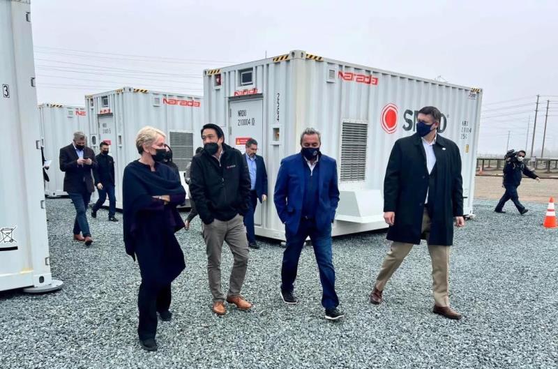 美國能源部長格蘭霍姆與國會議員貝拉等,參觀位于美國加州的南都光伏儲能項(xiàng)目