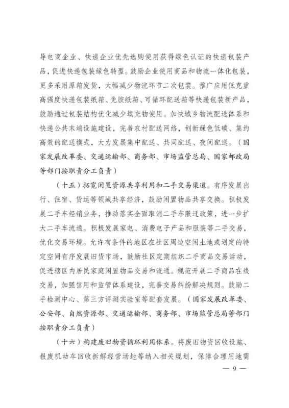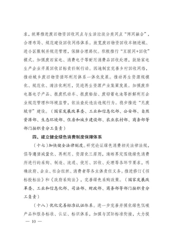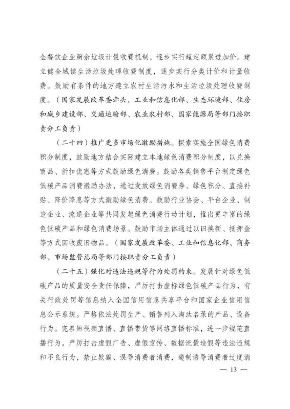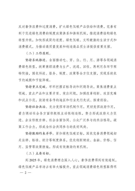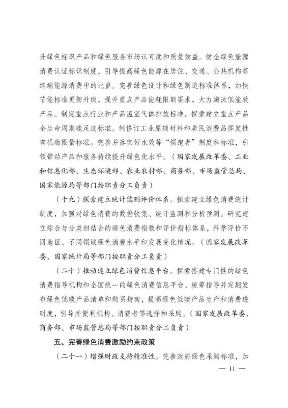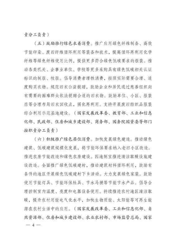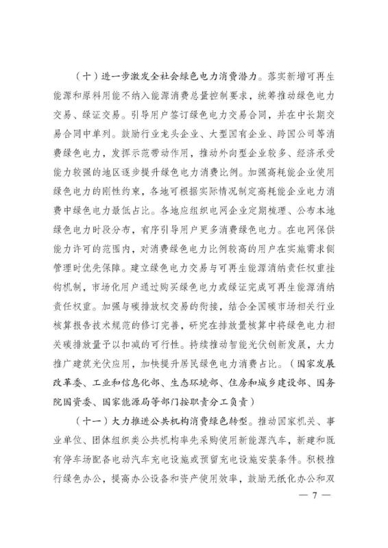 為深入貫徹落實(shí)《中共中央、國(guó)務(wù)院關(guān)于完整準(zhǔn)確全面貫徹新發(fā)展理念做好碳達(dá)峰碳中和工作的意見》和《2030年前碳達(dá)峰行動(dòng)方案》有關(guān)要求,根據(jù)碳達(dá)峰碳中和工作領(lǐng)導(dǎo)小組部署安排,國(guó)家發(fā)展改革委、工業(yè)和信息化部、住房和城鄉(xiāng)建設(shè)部、商務(wù)部、市場(chǎng)監(jiān)管總局、國(guó)管局、中直管理局會(huì)同有關(guān)部門研究制定了《促進(jìn)綠色消費(fèi)實(shí)施方案》?,F(xiàn)印發(fā)給你們,請(qǐng)結(jié)合實(shí)際,認(rèn)真抓好貫徹落實(shí)。