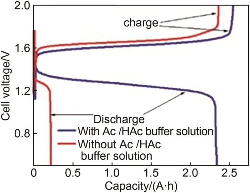 圖4 電解液中加入緩沖液后對(duì)電池性能的影響