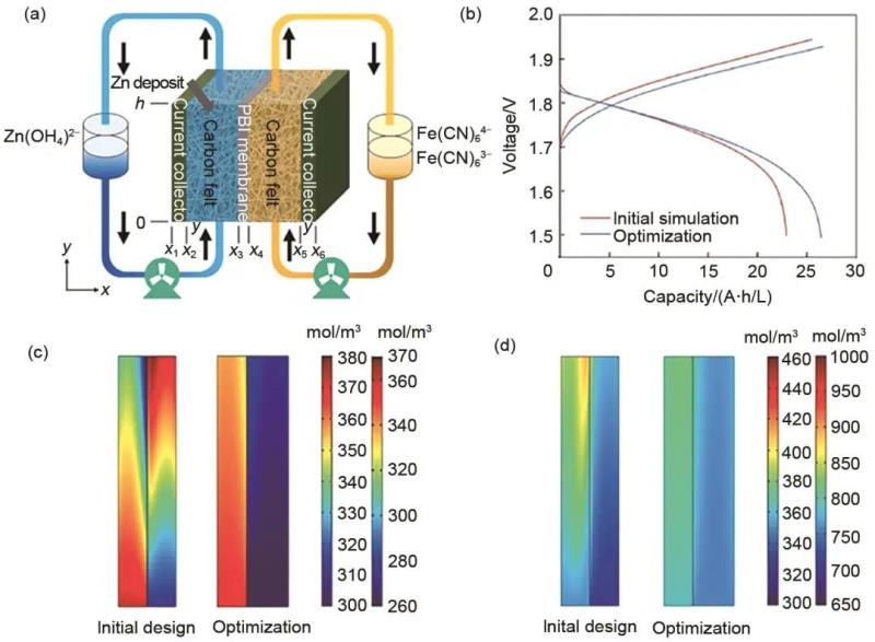 (3)將實(shí)驗(yàn)研究與數(shù)值模擬相結(jié)合,能夠提高研發(fā)效率。通過(guò)建立符合實(shí)際的物理模型,探究鋅鐵液流電池負(fù)極中電極、隔膜等材料,電池結(jié)構(gòu)以及工作狀態(tài)等對(duì)電池運(yùn)行的影響,對(duì)設(shè)計(jì)可靠的電池體系具有指導(dǎo)作用。