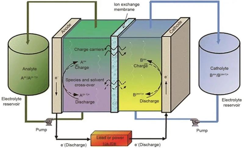 隨著“碳達(dá)峰、碳中和”目標(biāo)的提出,我國(guó)正以極快的速度大力發(fā)展清潔能源,風(fēng)能、太陽(yáng)能等可再生能源發(fā)電必將成為未來(lái)能源的主力,但可再生能源特有的間歇性和不穩(wěn)定性給電力系統(tǒng)的穩(wěn)定運(yùn)行帶來(lái)了重大挑戰(zhàn),而儲(chǔ)能技術(shù)是一種有效的手段,可以幫助實(shí)現(xiàn)可再生能源的高效利用以及電力系統(tǒng)的穩(wěn)定運(yùn)行。相比于抽水蓄能等物理儲(chǔ)能技術(shù),靈活性更高的電池儲(chǔ)能技術(shù)逐漸引起人們的注意。在諸多電池儲(chǔ)能技術(shù)中,液流電池由于其長(zhǎng)壽命、高安全性、高能效而成為頗具發(fā)展?jié)摿Φ拇笠?guī)模電池儲(chǔ)能技術(shù)。