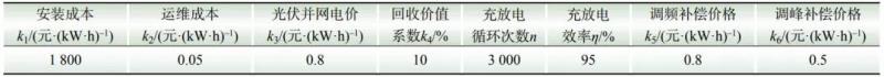 儲能電池成本和收益計(jì)算中所需參數(shù)如表3所示。