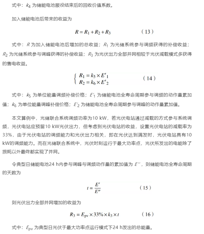 本文分析光伏電站加入儲能電池后在儲能電池全壽命周期內(nèi)光儲聯(lián)合系統(tǒng)參與電網(wǎng)調(diào)頻調(diào)峰的經(jīng)濟(jì)性。