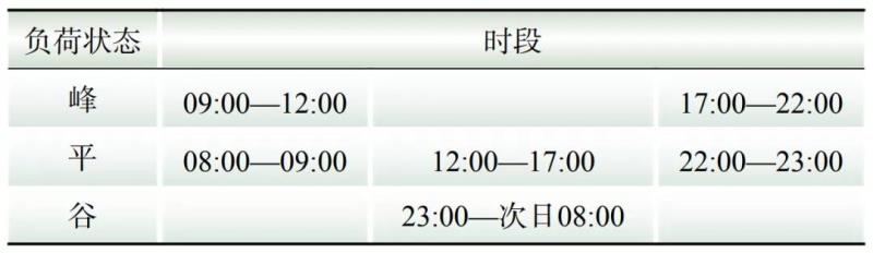 儲能電池運(yùn)行在調(diào)峰模式時需要根據(jù)調(diào)度中心的指令設(shè)置儲能電池的充放電時段,本文算例以某省的負(fù)荷峰平谷時段[20]來代表調(diào)度中心指令,如表1所示。