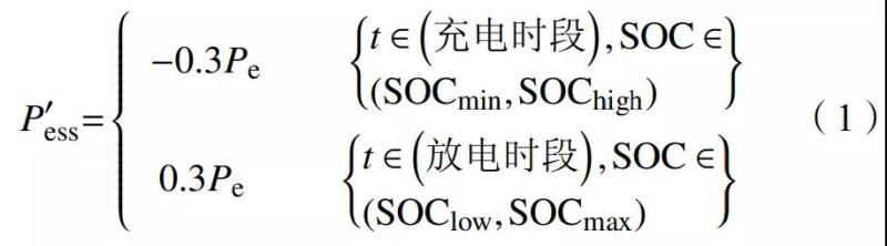 在調(diào)峰模式下,儲能電池充放電的時長在小時級,因此儲能電池可以根據(jù)自身容量大小,采取較小功率進(jìn)行充放電,以此來延長儲能電池的使用壽命。在實(shí)際工程中,未考慮荷電狀態(tài)約束時,調(diào)峰模式下通常設(shè)置0.3倍儲能電池額定功率為初級參考功率進(jìn)行充放電。