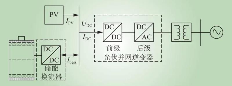實(shí)際光伏電站中,光伏并網(wǎng)逆變器中的DC/DC Boost換流器使用了單向開關(guān)管,因此光伏并網(wǎng)逆變器只支持功率由光伏側(cè)向電網(wǎng)側(cè)單向流動。在光儲系統(tǒng)中,儲能電池吸收的功率均來自光伏。