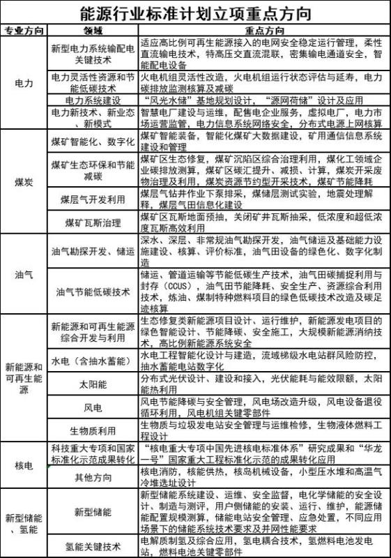 附件:能源行業(yè)標(biāo)準(zhǔn)計劃立項重點方向
