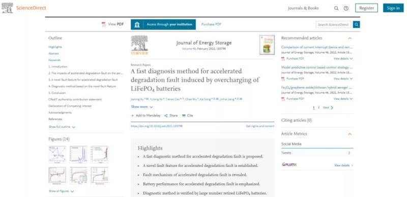 記者1月21日獲悉,由哈爾濱工業(yè)大學電氣工程及自動化學院無線電能傳輸技術研究所助理教授徐佳寧,以及正在英國利茲大學電子電氣工程學院研修深造的哈工大電測技術和智能控制研究所曹天傲博士等人組成的科研團隊,針對以上新能源汽車所面臨的難題,完成了一項研究成果《磷酸鐵鋰電池過充電導致的加速退化故障之快速診斷方法》,并于去年歲末在線發(fā)表在國際權威專業(yè)期刊《儲能雜志》上。