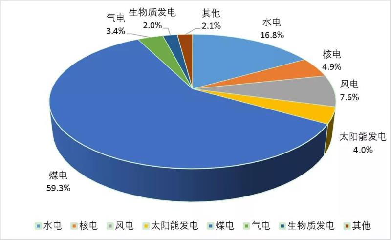 2021年1—10月各類型全口徑發(fā)電量占比情況