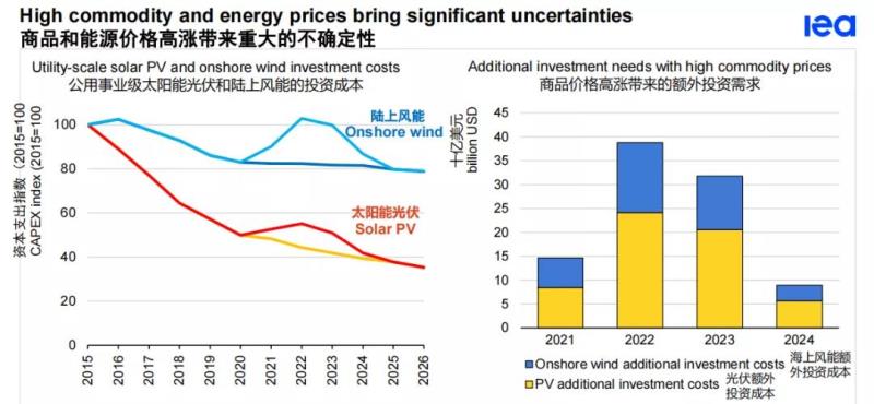 太陽能光伏發(fā)電站和風(fēng)力發(fā)電站的較高價(jià)格對預(yù)期設(shè)備價(jià)格會持續(xù)下降的贏得競爭性拍賣的開發(fā)商構(gòu)成了特別的挑戰(zhàn)。如果商品價(jià)格在2022年之前一直居高不下,那么太陽能三年和風(fēng)能五年的成本降低就會被抹去。增加的成本將需要超過1000億美元的額外投資來安裝相同數(shù)量的容量。 這相當(dāng)于將今天的全球可再生能源發(fā)電能力的年度投資增加約1/3。