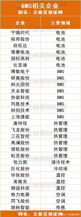 北極星不完全統(tǒng)計,涉及電池管理系統(tǒng)BMS相關企業(yè)如下: