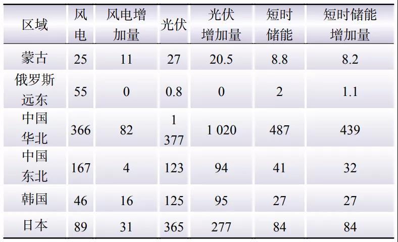 (2)在情景0優(yōu)化結(jié)果的基礎(chǔ)上,增加風(fēng)資源較好區(qū)域風(fēng)電的裝機(jī)容量,作為新的邊界條件,重新優(yōu)化東北亞6區(qū)域的新能源、電網(wǎng)和儲(chǔ)能容量,論述新能源裝機(jī)布局和容量規(guī)劃問(wèn)題,形成情景1。