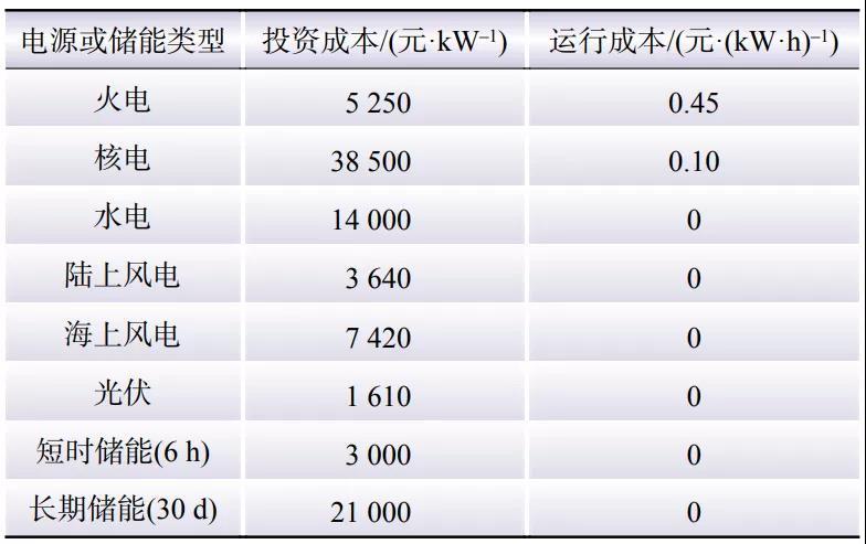 表3 2050年不同類(lèi)型電源和儲(chǔ)能成本