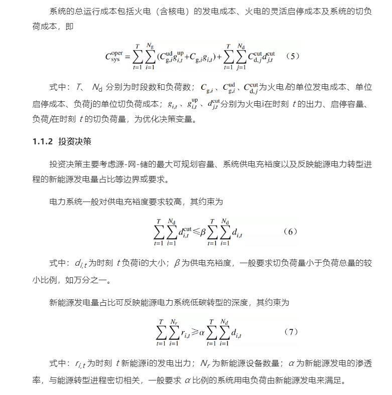 摘要:隨著全球大規(guī)模風(fēng)電、光伏的持續(xù)開(kāi)發(fā),系統(tǒng)的凈負(fù)荷波動(dòng)不斷增加,迫切需要建立可量化而又高效的廣域電力系統(tǒng)優(yōu)化規(guī)劃模型,促進(jìn)廣域范圍多種靈活性資源規(guī)劃研究。首先,以簡(jiǎn)化的機(jī)組組合模型為基礎(chǔ),建立計(jì)及多種靈活性資源出力約束和基于時(shí)序的生產(chǎn)運(yùn)行模擬模型,以系統(tǒng)總成本最低為優(yōu)化目標(biāo),考慮多種投資決策和生產(chǎn)運(yùn)行約束,最終優(yōu)化出系統(tǒng)目標(biāo)水平年的新能源電源、互聯(lián)電網(wǎng)及儲(chǔ)能的容量,并歸納新能源-互聯(lián)電網(wǎng)-儲(chǔ)能聯(lián)合規(guī)劃的分析流程。其次,利用以上模型方法開(kāi)展案例分析,以東北亞2035年源-網(wǎng)-儲(chǔ)規(guī)劃方案為基礎(chǔ),優(yōu)化計(jì)算2050年的新增新能源、電網(wǎng)互聯(lián)及儲(chǔ)能容量,并在此基礎(chǔ)上進(jìn)一步闡述新能源裝機(jī)容量、電網(wǎng)互聯(lián)容量、儲(chǔ)能容量、新能源裝機(jī)與儲(chǔ)能容量之間的關(guān)系、電網(wǎng)互聯(lián)與儲(chǔ)能容量之間的關(guān)系等關(guān)鍵問(wèn)題。最后,基于以上分析,給出源-網(wǎng)-儲(chǔ)規(guī)劃中應(yīng)該盡量避免的誤區(qū)和統(tǒng)籌優(yōu)化建議,為未來(lái)高比例新能源電力系統(tǒng)的規(guī)劃提供技術(shù)參考。