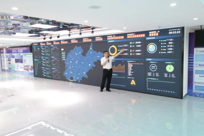 2021年5月26日,國網(山東)電動汽車服務有限公司平臺部工作人員正在向參觀者講解智慧車聯(lián)網平臺。