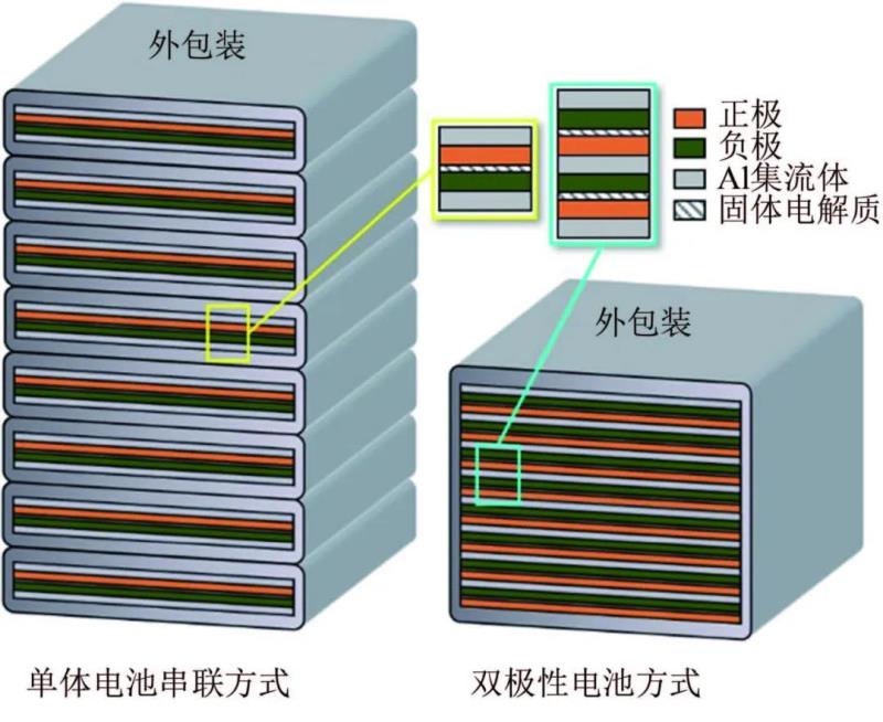 (3)開(kāi)發(fā)固態(tài)電池技術(shù),著重開(kāi)發(fā)新型鈉離子固體電解質(zhì),進(jìn)一步提高鈉離子電導(dǎo)率,并解決固固界面難題;引入雙極性電池技術(shù),進(jìn)一步提高能量密度(圖6);