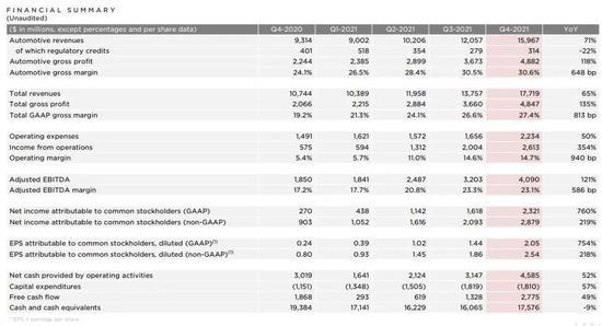 2021年,雖然疫情余波未了、芯片依然短缺、原材料價(jià)格還在飆升,但是絲毫沒有影響到特斯拉賺錢的能力。