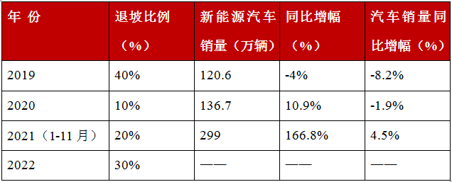 “新能源汽車補(bǔ)貼剛剛退坡之初的2019年,還有的企業(yè)不太適應(yīng),多種因素導(dǎo)致當(dāng)年新能源汽車銷量下滑,但從2020年的10%到2021年的20%,再到2022年的30%,政策調(diào)整為循序漸進(jìn)逐步退坡,企業(yè)也在市場(chǎng)磨礪中逐漸適應(yīng)并增強(qiáng)了市場(chǎng)競(jìng)爭(zhēng)力?!睏钣滥曛v到,從相關(guān)數(shù)據(jù)可以看出,與整個(gè)汽車市場(chǎng)銷售情況相比,新能源汽車銷量在逐步增長(zhǎng),且領(lǐng)先整個(gè)汽車市場(chǎng)的幅度也越來(lái)越大。