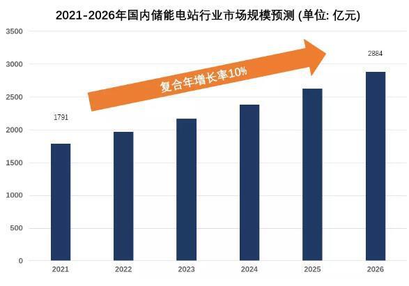 未來,隨著儲(chǔ)能技術(shù)與應(yīng)用策略的成熟、儲(chǔ)能應(yīng)用市場(chǎng)與價(jià)格機(jī)制的建立,我國實(shí)現(xiàn)能源結(jié)構(gòu)向低碳化轉(zhuǎn)型指日可待。未來幾年儲(chǔ)能電站市場(chǎng)規(guī)模將以10%的速度增長,至2026年市場(chǎng)規(guī)模將超過2800億元。