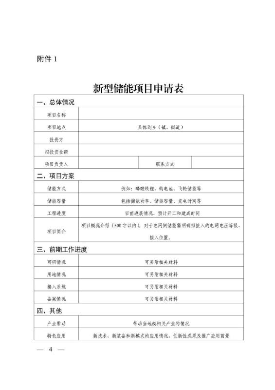 各申報單位需按要求填報項目申請表(附件1)、編制項目建議書(附件2)。項目申請材料要求于2月15日前報至項目所在地能源主管部門,請各市能源主管部門于2月18日前完成項目匯總并行文報送至省能源局,同時報送電子版。省能源局將組織對申報項目進行審核評審,確定示范項目名單,并在省發(fā)展改革委網(wǎng)站上公示。公示無異議的,確認為新型儲能示范項目。