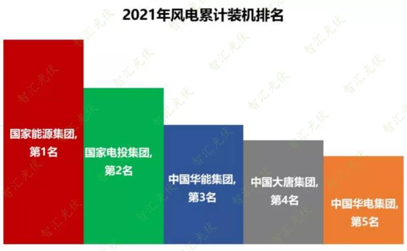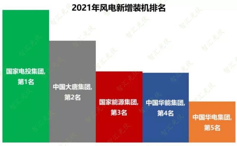 2021年當(dāng)年,五大央企的風(fēng)電新增裝機(jī)均在2GW以上,國(guó)電投增加規(guī)模最大。