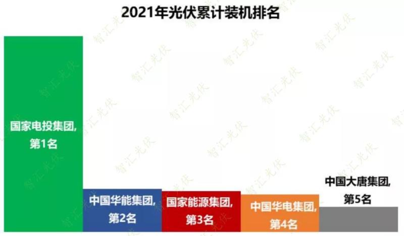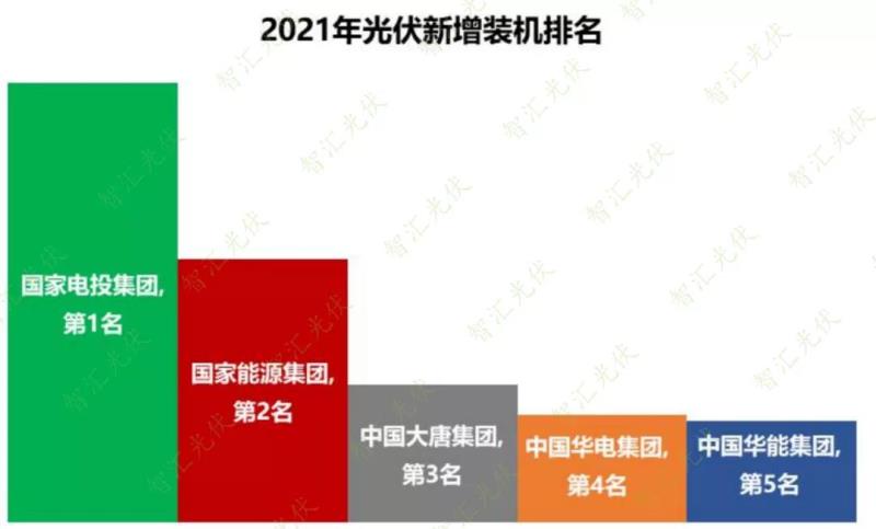 2021年當(dāng)年,五大央企的光伏新增裝機(jī)均在2GW以上。其中,國(guó)電投增加規(guī)模最大,超過(guò)10GW。