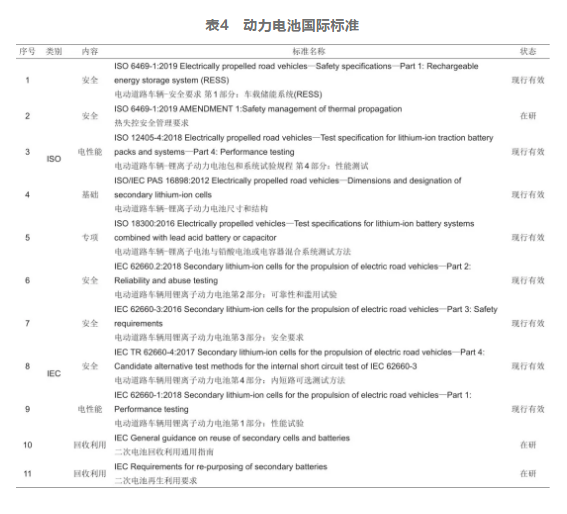 表4 動(dòng)力電池國(guó)際標(biāo)準(zhǔn)