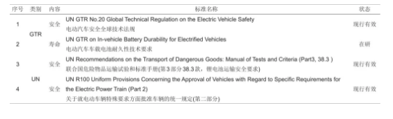 表3 動(dòng)力電池國(guó)際法規(guī)