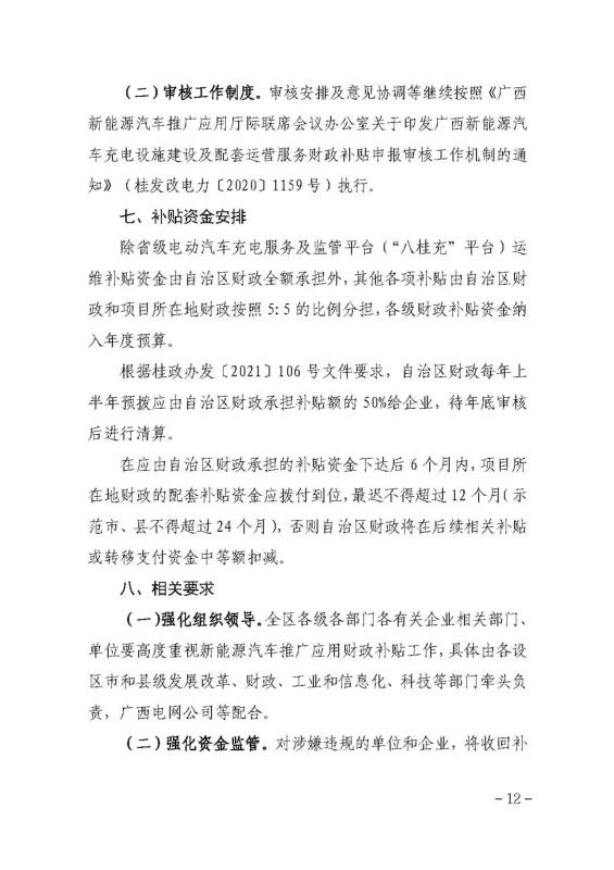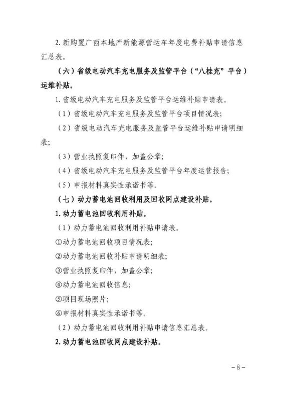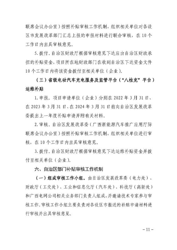 (六)省級電動(dòng)汽車充電服務(wù)及監(jiān)管平臺(tái)(“八桂充”平臺(tái))綜合運(yùn)維補(bǔ)貼。每年補(bǔ)貼上限不超過100萬元。