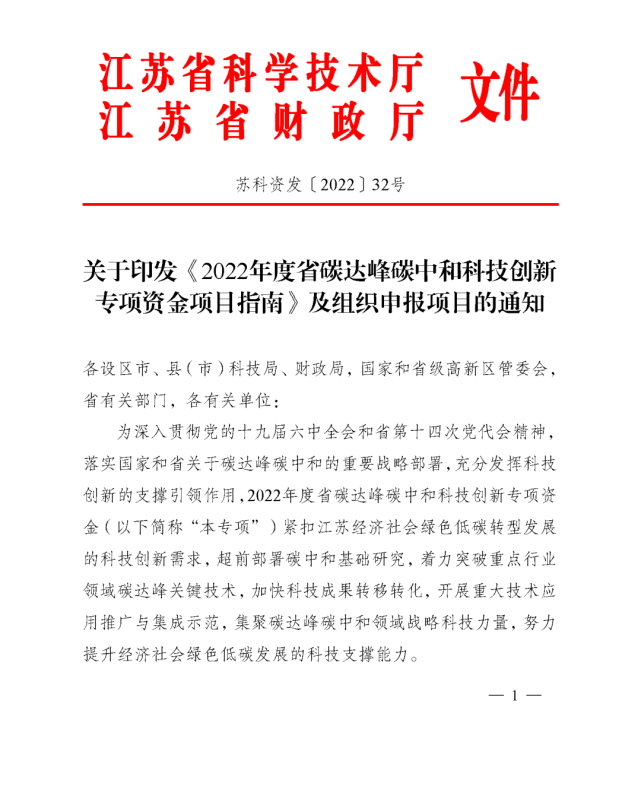 中國儲能網(wǎng)訊:近日,江蘇省科技廳發(fā)布《2022年度省碳達峰碳中和科技創(chuàng)新專項資金項目指南》及組織申報項目的通知,其中新型儲能技術等被列入新型能源技術重點領域攻關專題,可申報相應資金支持。