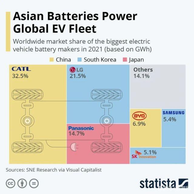 而據(jù)調(diào)研機(jī)構(gòu)SNE公布的數(shù)據(jù),寧德時代在2021年的動力電池市場占有率為32.5%,位居第一,LG新能源的市場占有率為21.5%,位居第二。