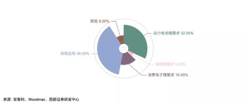 據(jù)統(tǒng)計(jì),2020年鋰的下游消耗在動(dòng)力電池、儲(chǔ)能電池、消費(fèi)電子、其他傳統(tǒng)應(yīng)用領(lǐng)域分別為32%、5%、16%、38%,2025年動(dòng)力電池領(lǐng)域的鋰消耗量占比預(yù)估將達(dá)到70%[4]。