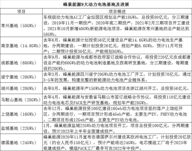 2025年產(chǎn)能規(guī)劃由280GWh提升至600GWh。目前,蜂巢能源已經(jīng)在國內(nèi)外建設(shè)了9大生產(chǎn)基地,其中國內(nèi)部署了常州金壇、湖州、馬鞍山、成都、遂寧、南京、鹽城、上饒8大基地,海外部署德國生產(chǎn)基地。
