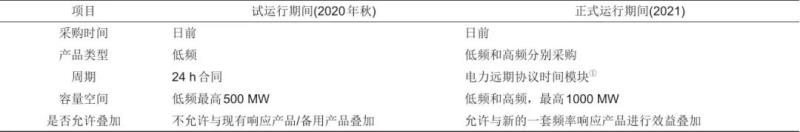 表3 動(dòng)態(tài)遏制調(diào)頻輔助服務(wù)品種概況