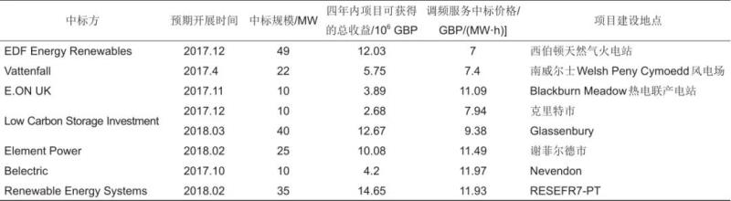 表2 英國(guó)EFR招標(biāo)采購(gòu)計(jì)劃的中標(biāo)項(xiàng)目