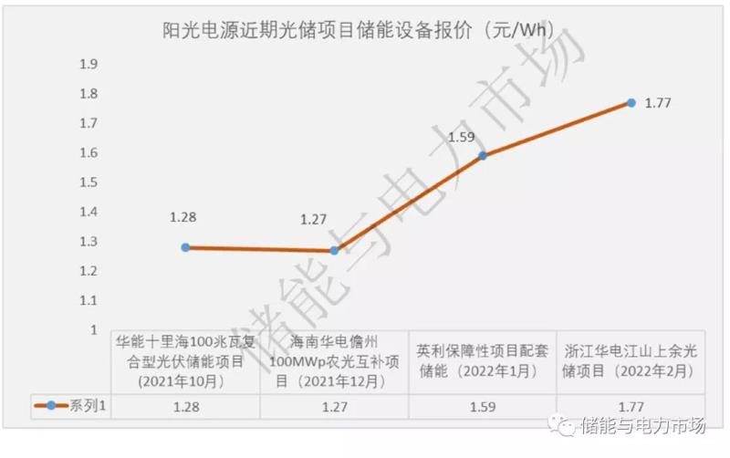 陽光電源1.77元/Wh的中標(biāo)單價(jià),相對于其2022年1月英利項(xiàng)目入圍報(bào)價(jià)1.59元/Wh,上浮了11.3%。而相對于該公司2021年底光伏儲(chǔ)能項(xiàng)目單價(jià)1.27元/Wh,此次報(bào)價(jià)更是上浮了39.4%。這一價(jià)格也達(dá)到了近期該公司投標(biāo)價(jià)格的最高值。